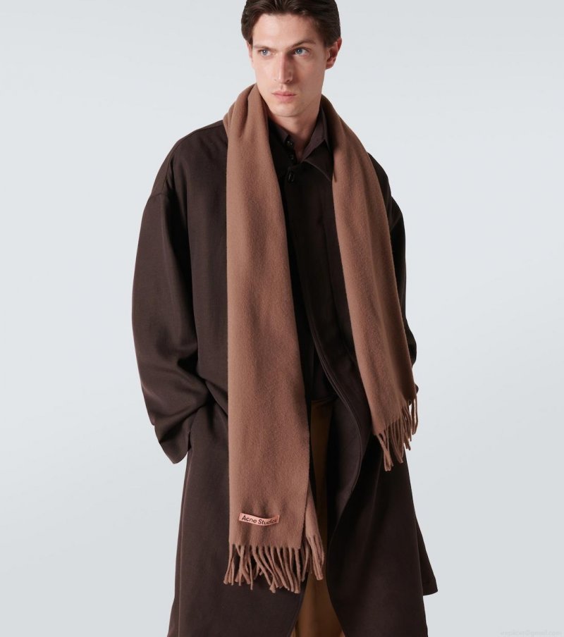Accessorize your looks with this cozy scarf from Acne Studios. Made in Italy from pure wool, the camel brown style has fringed trims and features a contrasting logo label.