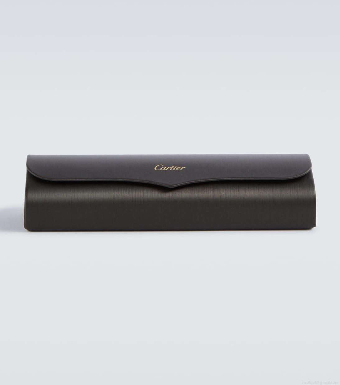 The Exception glasses from Cartier Eyewear Collection are made from metal with a gold-tone finish. The rectangular style features top bars that frame the face.