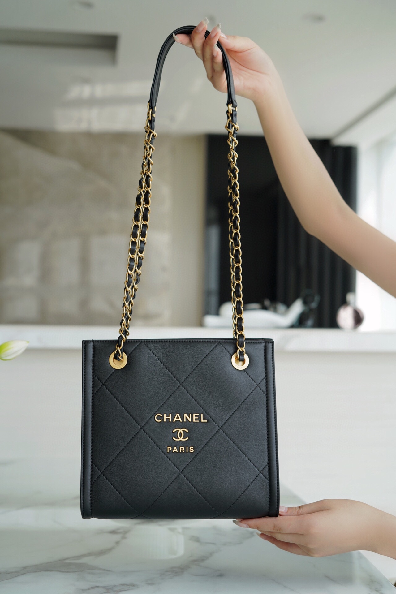 The CHANEL Fall/Winter New Tote Shopping Bag is love at first sight. It features a rich texture in high-quality leather, complemented by a simple solid color and chunky chain hardware. The large diamond pattern design is accentuated with a vibrant red hue, exuding a subtle yet luxurious appeal. With its ample storage capacity, this bag is perfect for any occasion and instantly transforms into an IT BAG when worn. Its minimalist, fashionable style exudes a strong vintage charm.