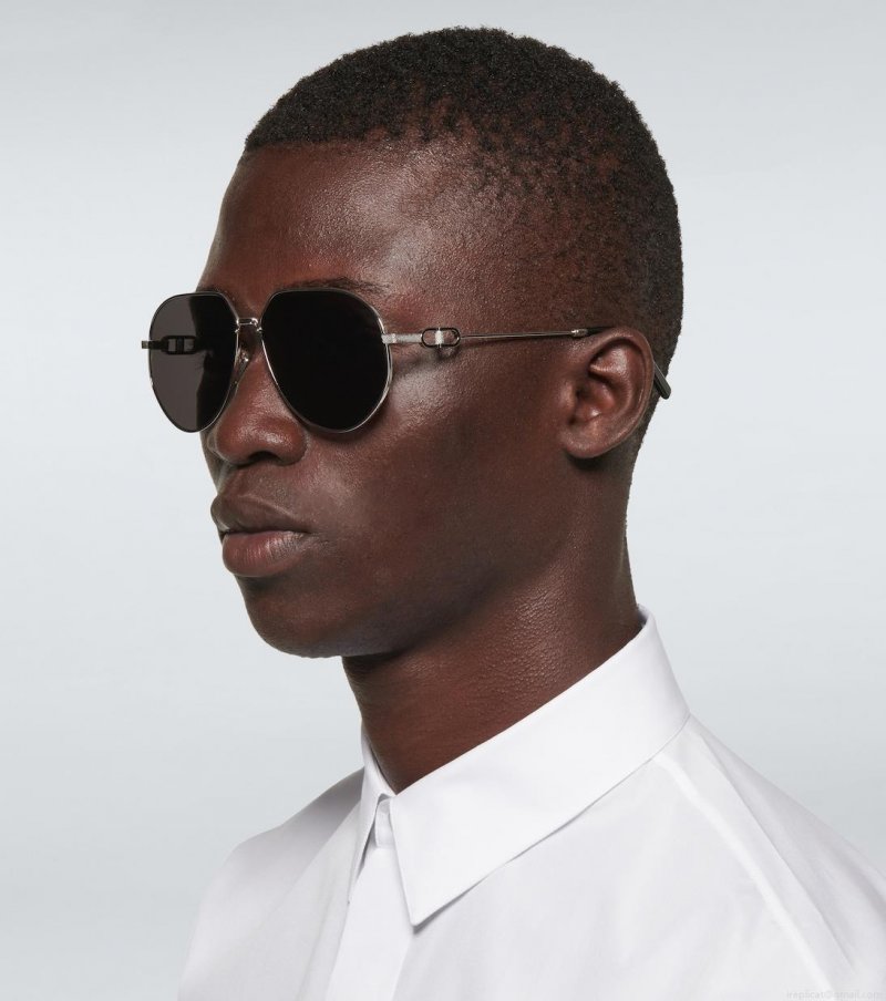 Distinguished by dark-tinted lenses, the CD Link A1U silver-tone metal sunglasses from Dior Eyewear feature the label's signature "CD" logo at the temples, and an engraved top bar frame and hinge.