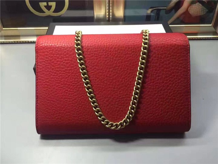 The GG Marmont mini chain wallet has a removable chain shoulder strap and extensive interior space. Made in our signature lightweight leather, noted for its incredible softness and elasticity.