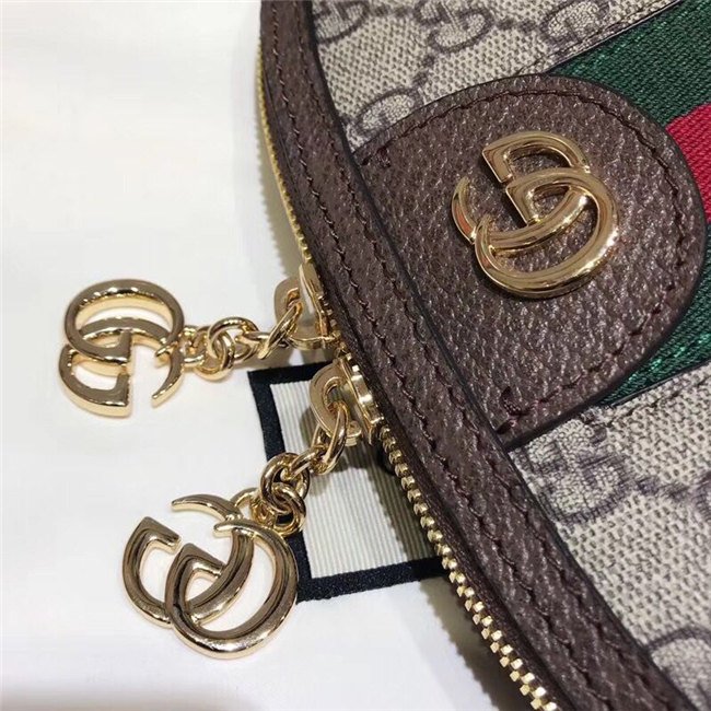 Crafted in GG Supreme canvas with inlaid Web stripe detail, the shoulder bag has a domed shape that recalls vintage designs. The Double G: an archival code appears atop a leather tab detail and on the zipper pull.