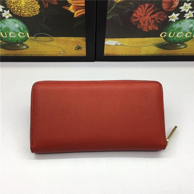 Inspired by vintage prints from the eighties, the Gucci logo is brought to the forefront. The retro-style motif is presented on the front of a zip around wallet in supple, textured leather.