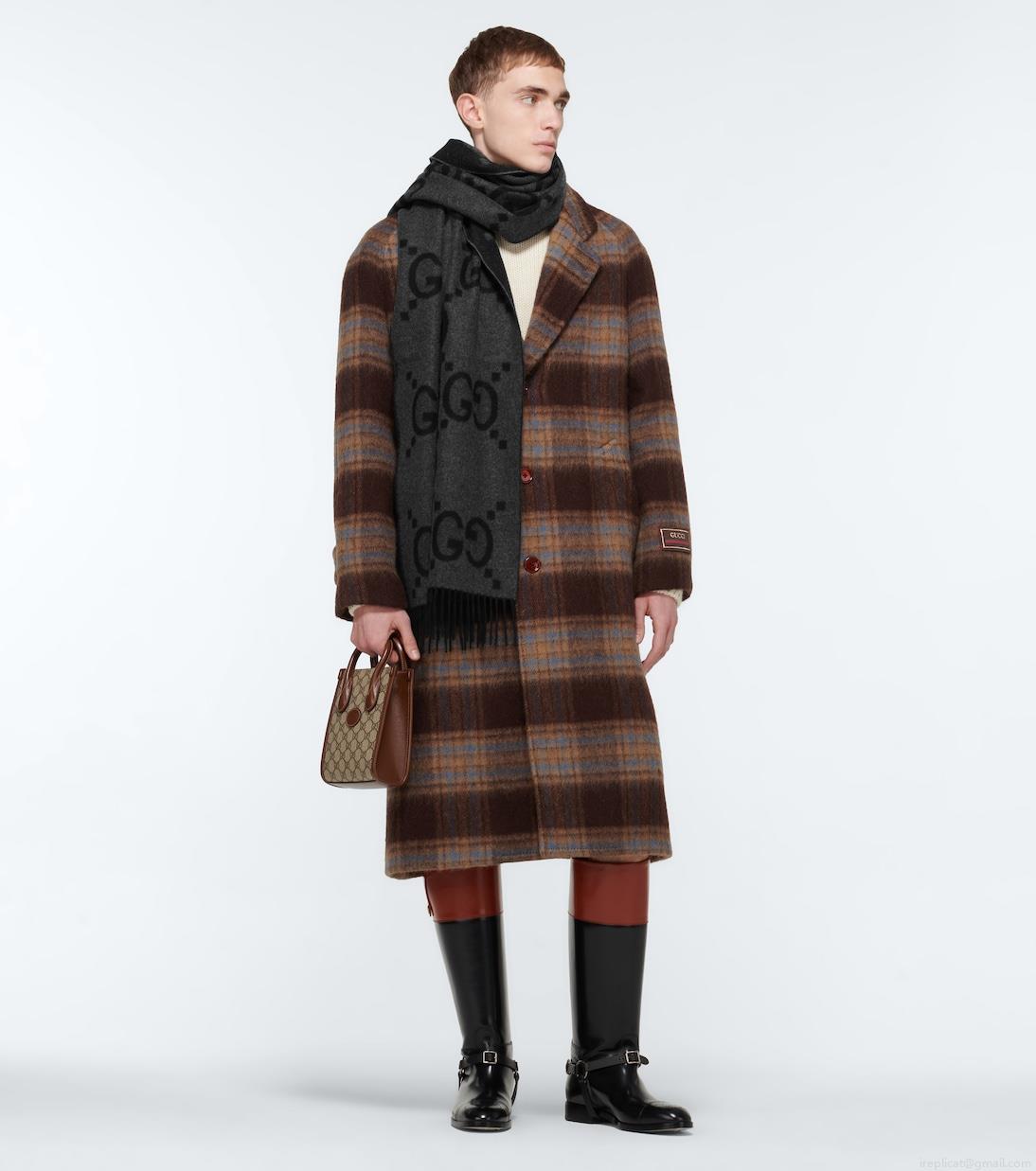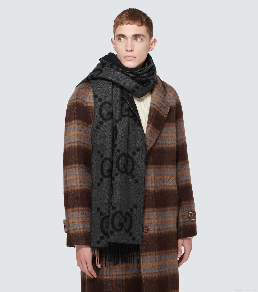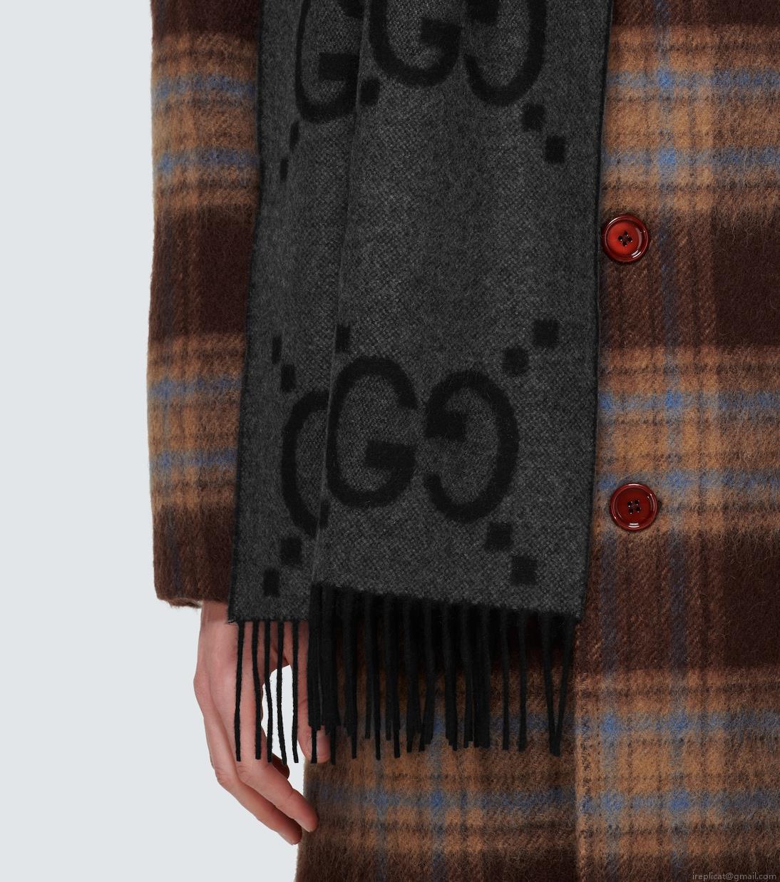 Jacquard-knit from pure cashmere, this grey and black Gucci scarf features the recognizable double G motif all-over and fringed edges.