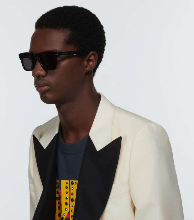 These sunglasses from Gucci have a timeless square shape. The frames are made from glossy black acetate and accented with gold-tone detailing and logo lettering.