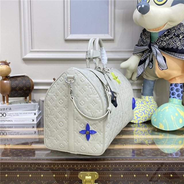 This creative update of the Keepall is imbued with the playful, carefree spirit of childhood. In keeping with designer Virgil Abloh’s “Climbing” theme for Fall-Winter 2022, sumptuous Taurillon Monogram cowhide in a mineral shade of gray is adorned with colorful climbing holds styled after Louis Vuitton’s famous Monogram flowers. A fun new take on a classic bag.