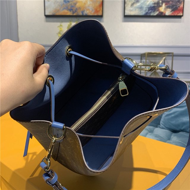 A true House icon, the NéoNoé bucket bag revisits a 1932 design by Gaston-Louis Vuitton. The original was created to transport bottles of Champagne in style; this modern version in Monogram canvas features a sleek shape, colorful leather trim and a matching bonded lining. The adjustable smart strap can be slung over the shoulder or lengthened for a trendy cross-body carry.