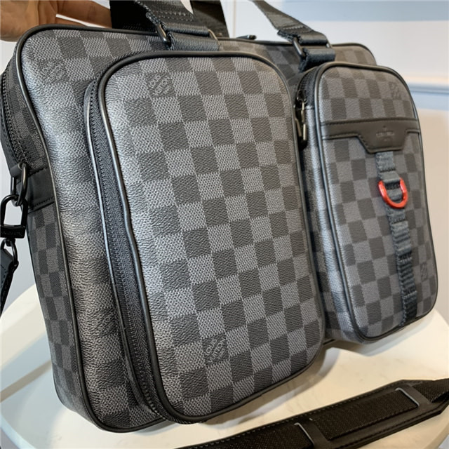 The ultra-functional Utility Business Bag comes in Damier Graphite canvas with black-and-red hardware and a red textile lining. The extra wide handles and adjustable strap with its leather shoulder pad enable comfortable carry options. The main zipped compartment and two side pockets can easily hold a laptop, iPad and assorted business documents.