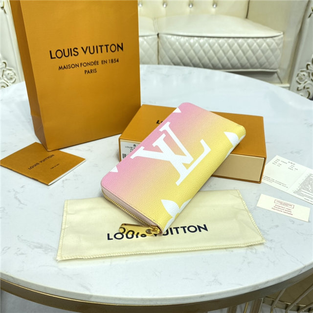 This special edition of Louis Vuitton”s emblematic Zippy wallet comes in Monogram canvas with a color gradation effect. It is part of the By The Pool capsule collection of accessories, leather goods and ready-to-wear for Summer 2021. This sleek wallet unzips to reveal a well-organized interior with ample space for cards, bills and coins.