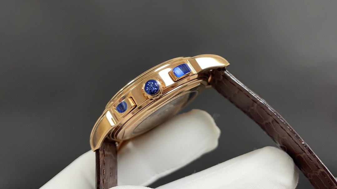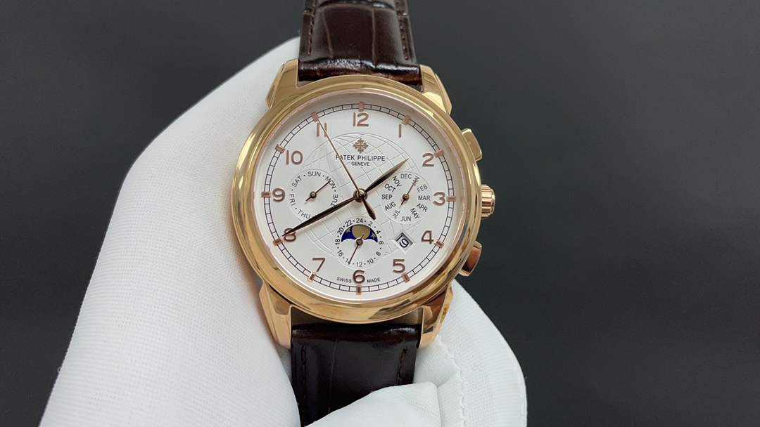 Movement: Equipped with the imported 9100 multi-function movement (zero repair) featuring functions such as 24-hour display, weekday, moon phase, and month. Made of imported 316L stainless steel, with an 18k quality vacuum furnace plating.