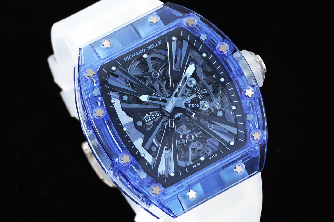 Blending material innovation with watch architecture, the legendary RM12-01 Tourbillon Sapphire Transparent edition is introduced. Richard Mille breaks technological barriers to create this extraordinary timepiece with a transparent movement, resulting in a visually stunning appearance for the RM12-01.