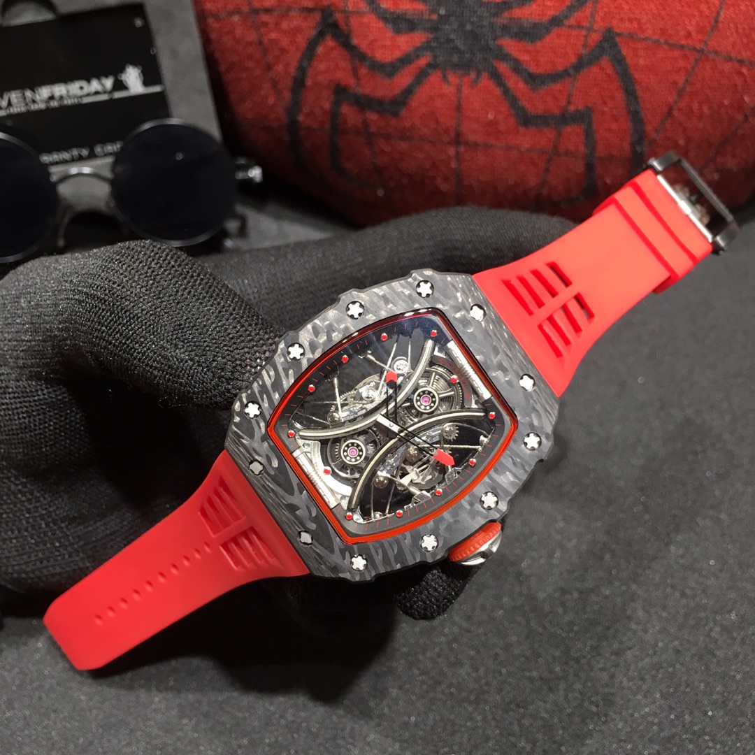 The carbon fiber with its unique wave-like luster and sharp case lines further accentuates the sporty style of this watch. It is a timepiece full of dynamism and vitality.