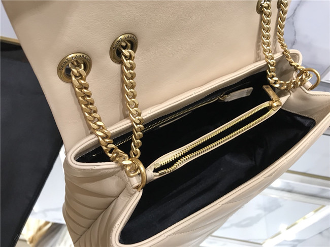 METAL AND LEATHER CHAIN STRAP AND “Y” MATELASSE STITCHING.