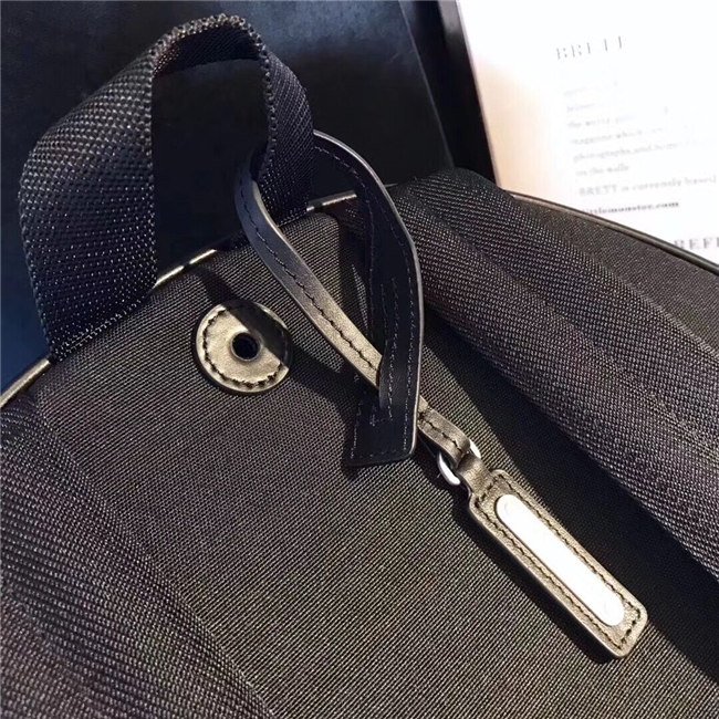 LEATHER TRIMMED BACKPACK WITH PATCHES, SAINT LAURENT SIGNATURE EMBOSSED EXTERIOR ZIP POCKET, CELL PHONE POCKET, ZIP COMPARTMENT AND PADDED SLOT POCKET.
